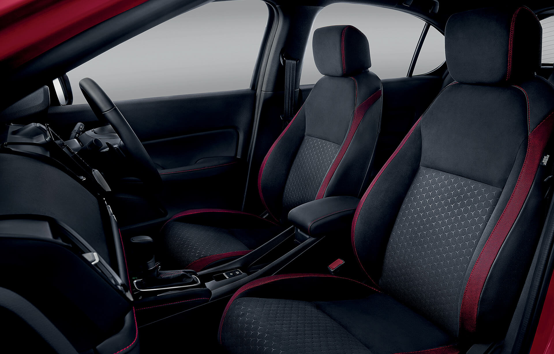 • 1.5L e:HEV RS - Kerusi ultra-sued (seakan baldu) dengan aksen merah dan sulaman benang merah