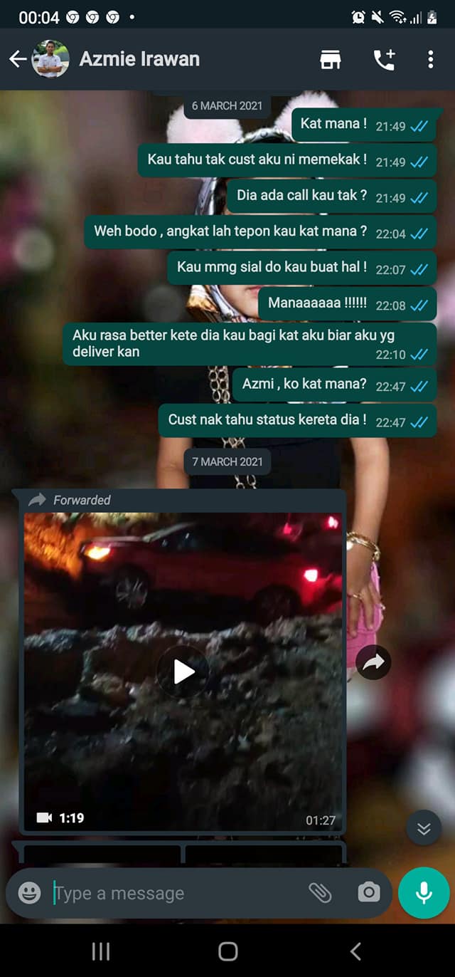 Menurutnya, urusan jualan dengan bakal penerima X50 itu dibuat sejak empat bulan dan model warna merah tersebut sudah didaftarkan 1 Mac lalu, manakala penghantaran kereta dari Kuala Lumpur ke Johor Bahru dirancang pada 6 Mac (Sabtu).