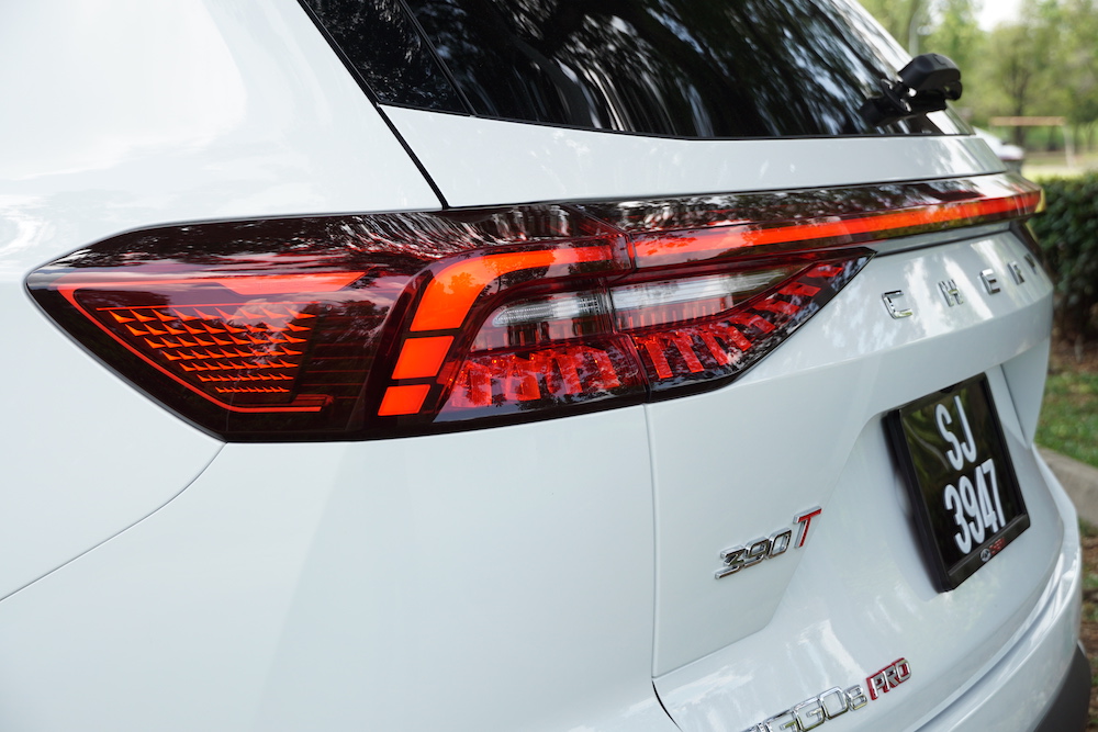 Menariknya, lampu belakang direka tirus dan mengapit teks lencana Chery. Lampu tersebut akan memaparkan pergerakan cahaya atas ke bawah manakala lampu signal pula jenis sekuensial.