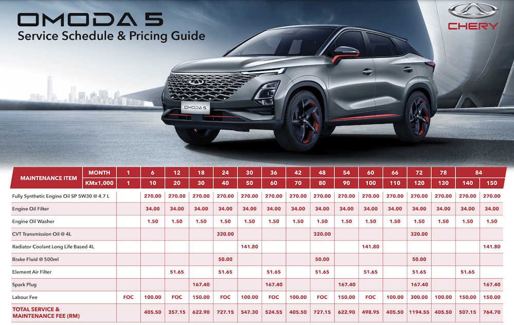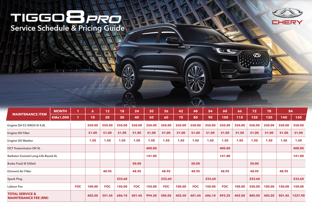 Chery Malaysia turut menawarkan Pakej Perlindungan Lanjutan (EWP), meliputi enjin dengan tawaran perlindungan selama 10 tahun atau hingga sejuta kilometer, mana satu tiba dulu.