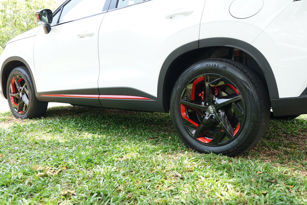 Jika mahu menampakkan gaya lebih futuristik, ada opsyen skema warna dengan aksen garis dan jalur merah bawah gril, cermin sisi, rim dan sisi SUV.