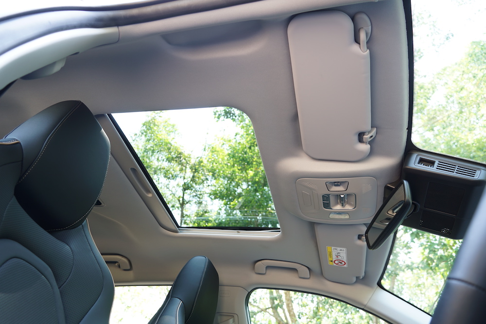 Siling bumbung berwarna cerah dan dilengkapi bumbung panoramik. Antara ciri menarik disediakan ialah teknologi pengecas wayarles, konektiviti Android Auto dan Apple CarPlay, juga wayarles, butang memori kerusi, penyaman udara dwi-zon dengan ventilator belakang, dan pintu but elektrik.