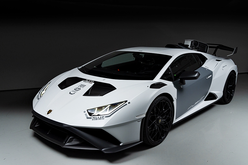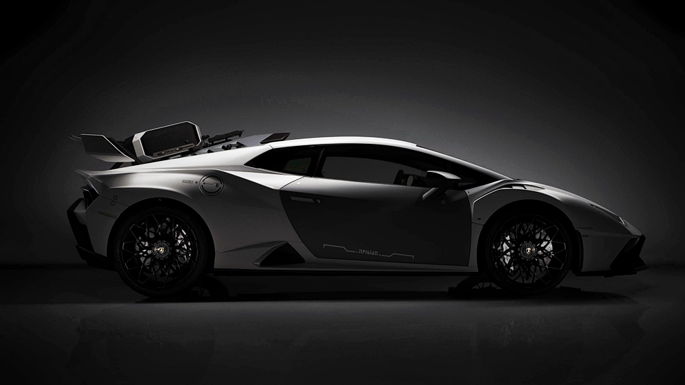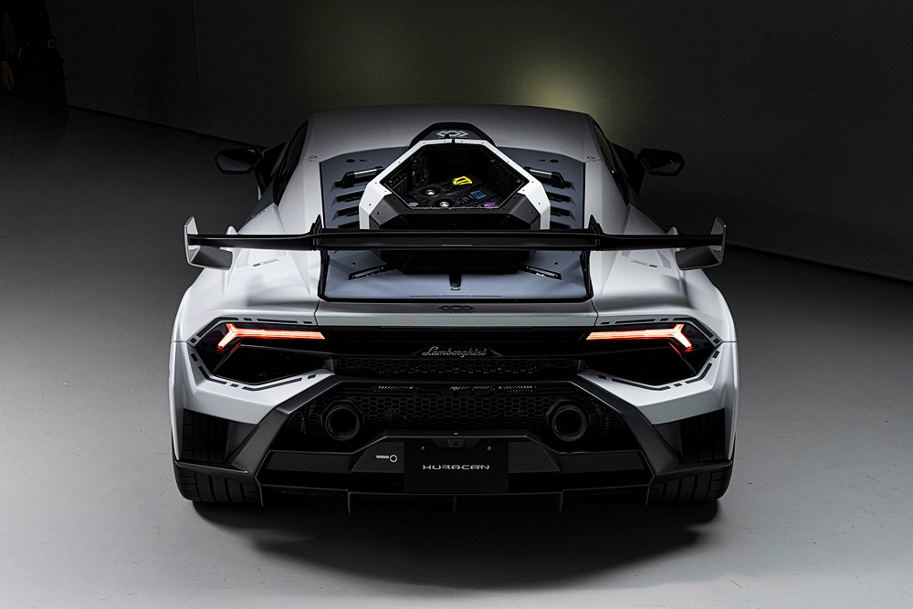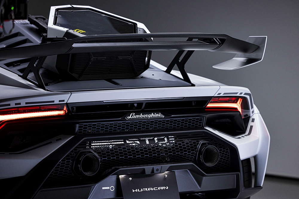 Lamborghini Huracán STO Time Chaser_111100 (2023) pula adalah ekspresi pereka itu yang bertemakan sibernetik dan sejarah 60 tahun Lamborghini.