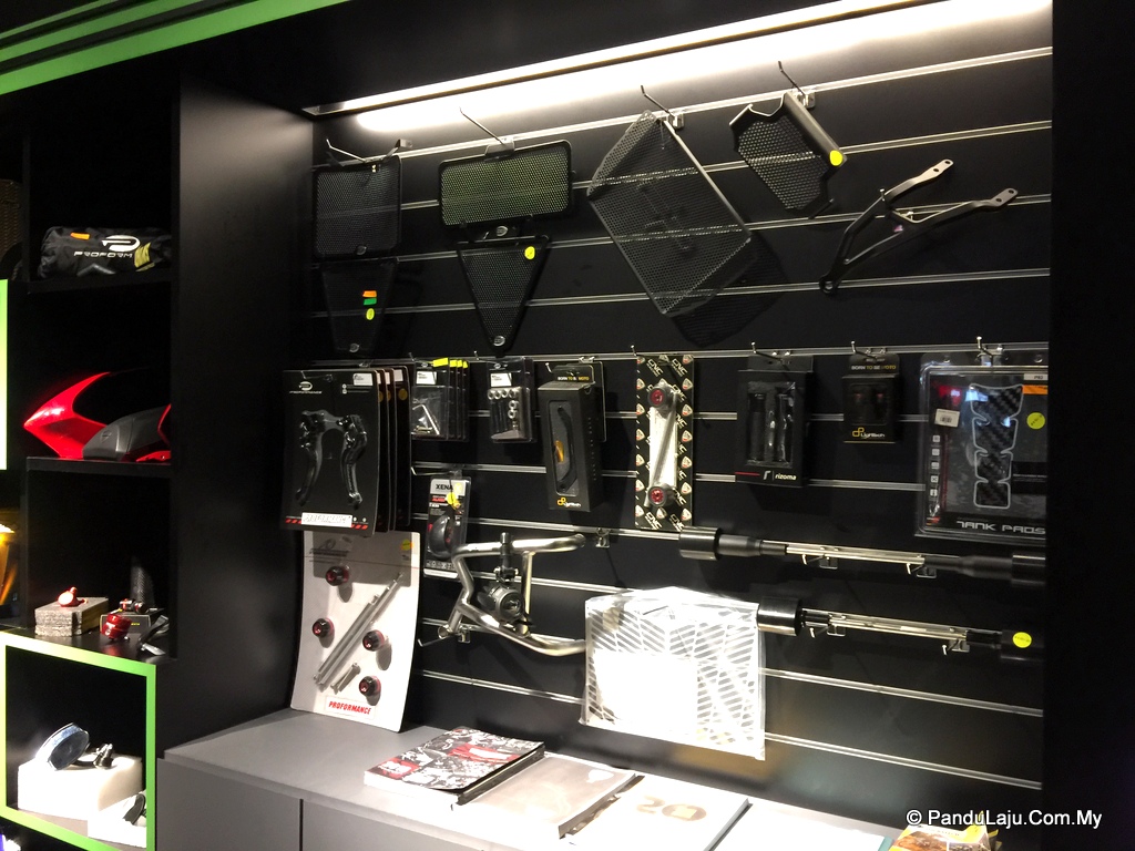 Selain menjual motosikal berkuasa tinggi Ducati, pusat sehenti tiga tingkat ini juga diberi kepercayaan untuk menjual tiga lagi jenama besar iaitu Moto Guzzi, Aprilia dan Vespa. Paling penting, pusat sehenti ini juga menawarkan pelbagai aksesori dan barang kelengkapan menunggang seperti jenama Alpinestar.