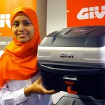 Namun siapa sangka baju hujan dan kotak simpanan barang Givi adalah hasil rekaan seorang pereka wanita. Ya, kotak simpanan barang, baju hujan dan produk Givi lain yang anda sedang gunakan sekarang direka anak tempatan, Rozaida Ahmad Zaki, 31, yang menyertai Givi Asia Sdn Bhd sebagai pereka grafik sejak 2009.
