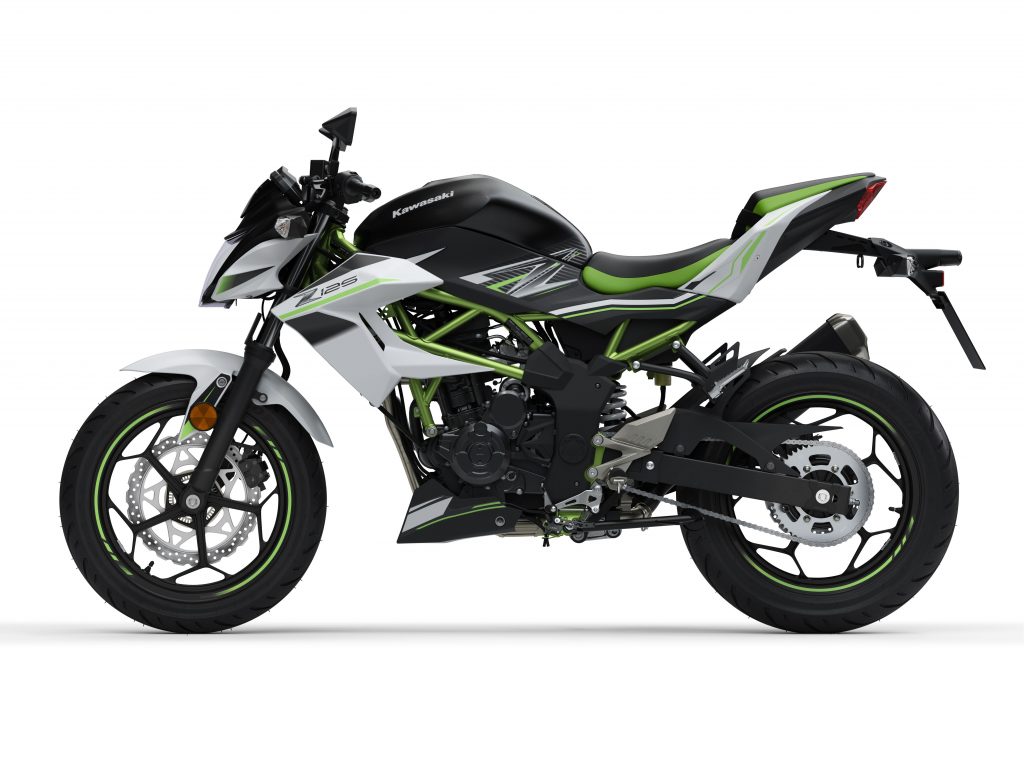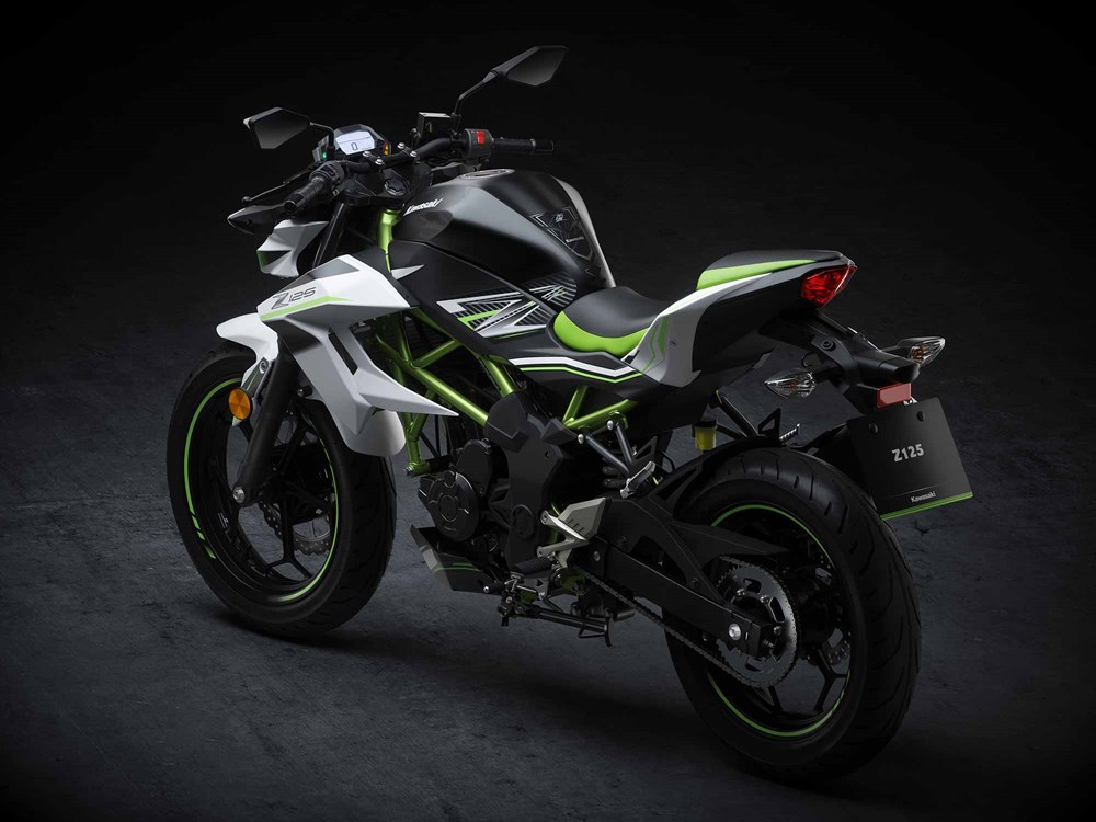 Sementara itu Z125 (2019) tentunya meminjam penampilan barisan produk siri Z. Naked bike itu tampil dengan skema warna hitam dan putih dengan frem trellis hijau. Sekali pandang nampak seperti Z650 mini.