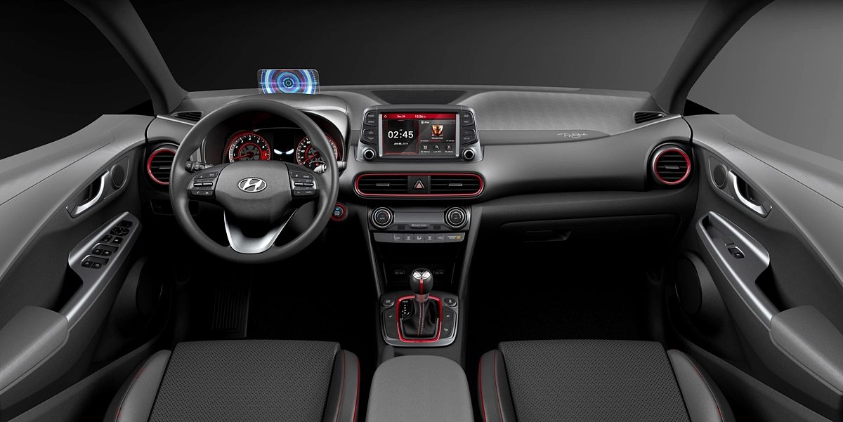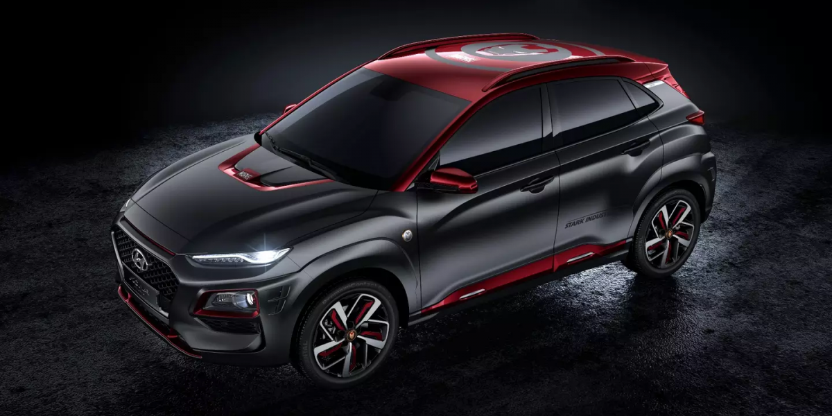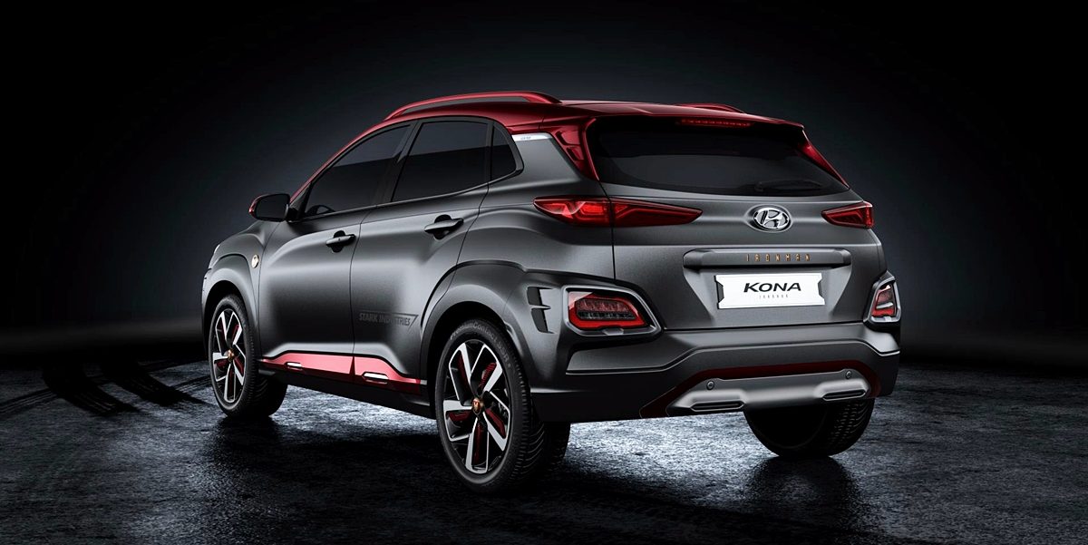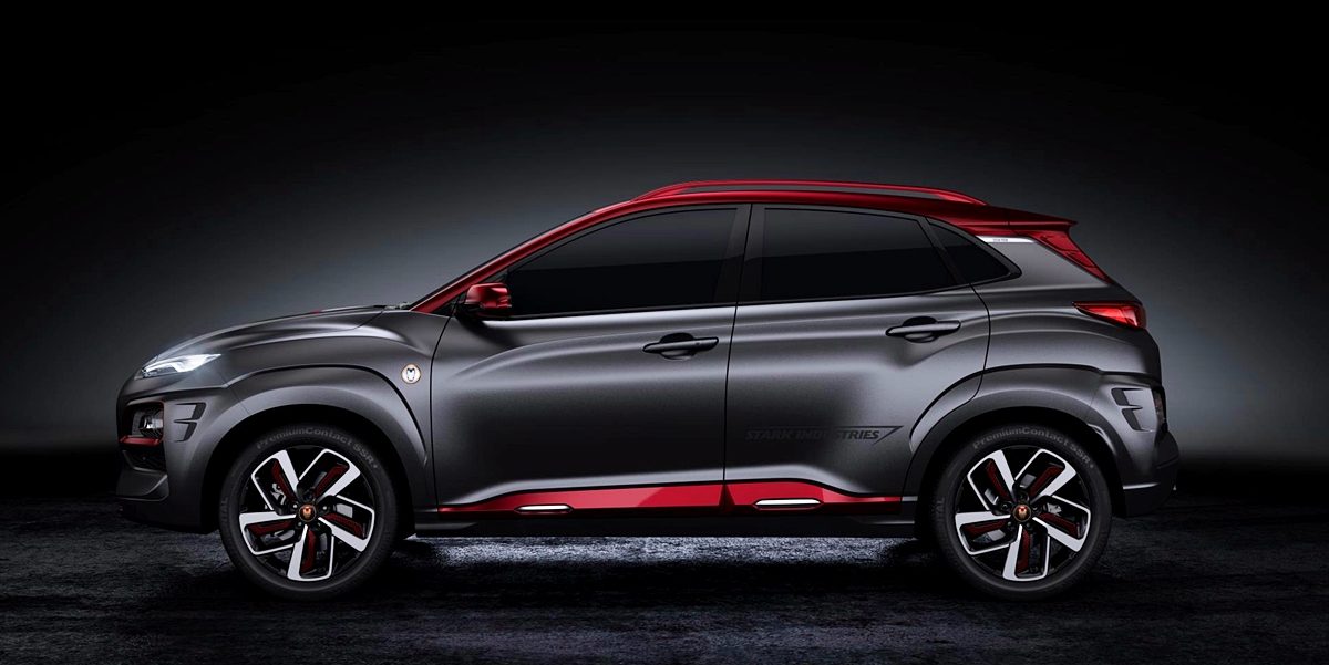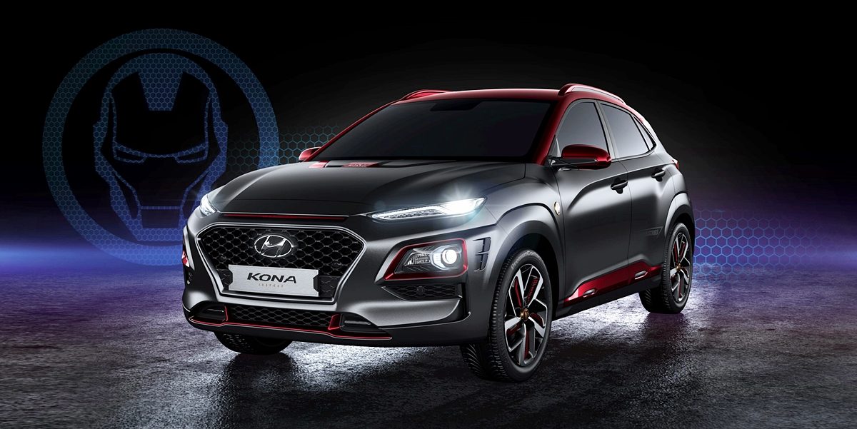 Kona edisi khas ini tampil dalam warna kelabu kusam dan merah seperti sut Iron Man dan rim aloi 18 inci yang tertera wajah adiwira itu. Melihat ruang kabin, kemasan upholsteri kulit untuk kerusi menggunakan sulaman benang merah, manakala kerusi depan disulam logo STARK Industries dan imej Iron Man.