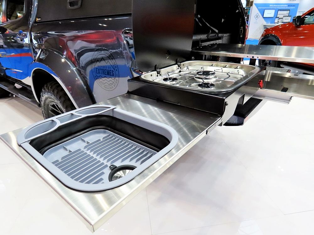 - Turut dilengkapi peti sejuk dan unit dapur simpan-keluar dengan tiga penunu dan sinki 12 liter.