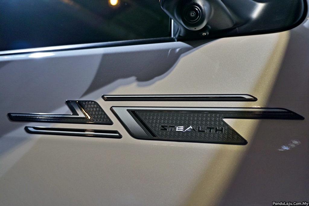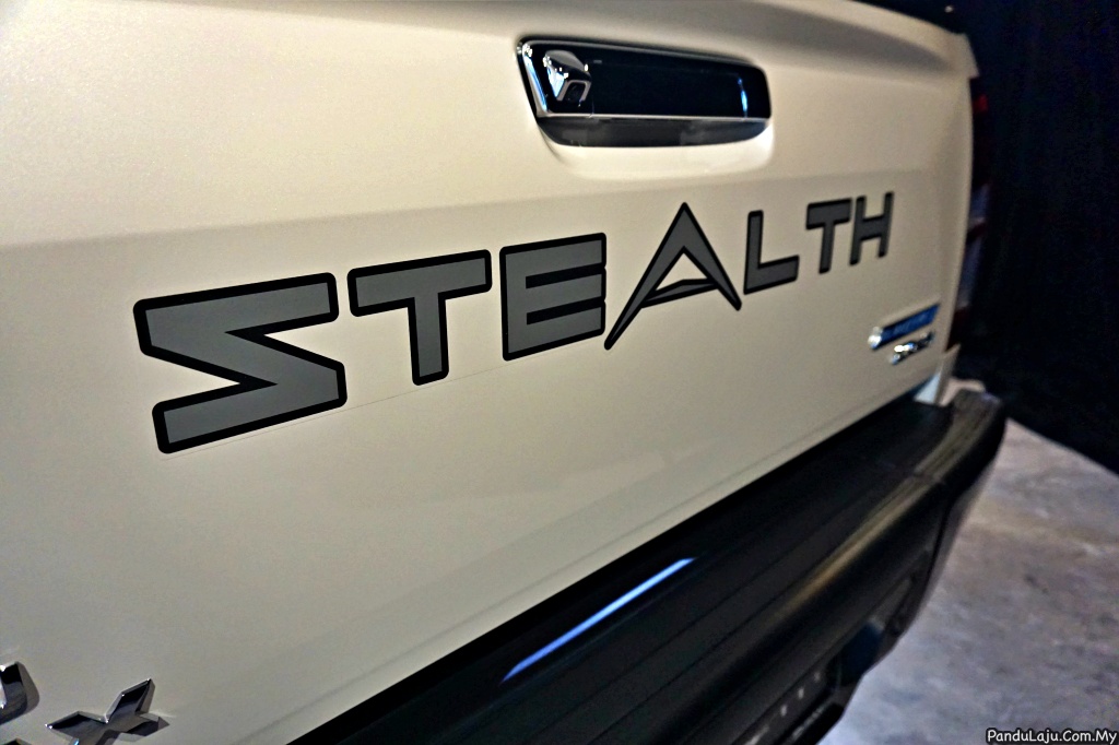 4. Bahagian gril menampilkan garis kemasan warna perak yang halus, menghiasi bahagian depan dan dilanjutkan ke bahagian spoiler depan. Untuk menambahkan lagi nilai eksklusif, trak pikap itu dilengkapi dengan rim aloi 18-inci dengan lencana Stealth. Perkataan Stealth turut boleh ditemui pada pintu dan bahagian belakang.
