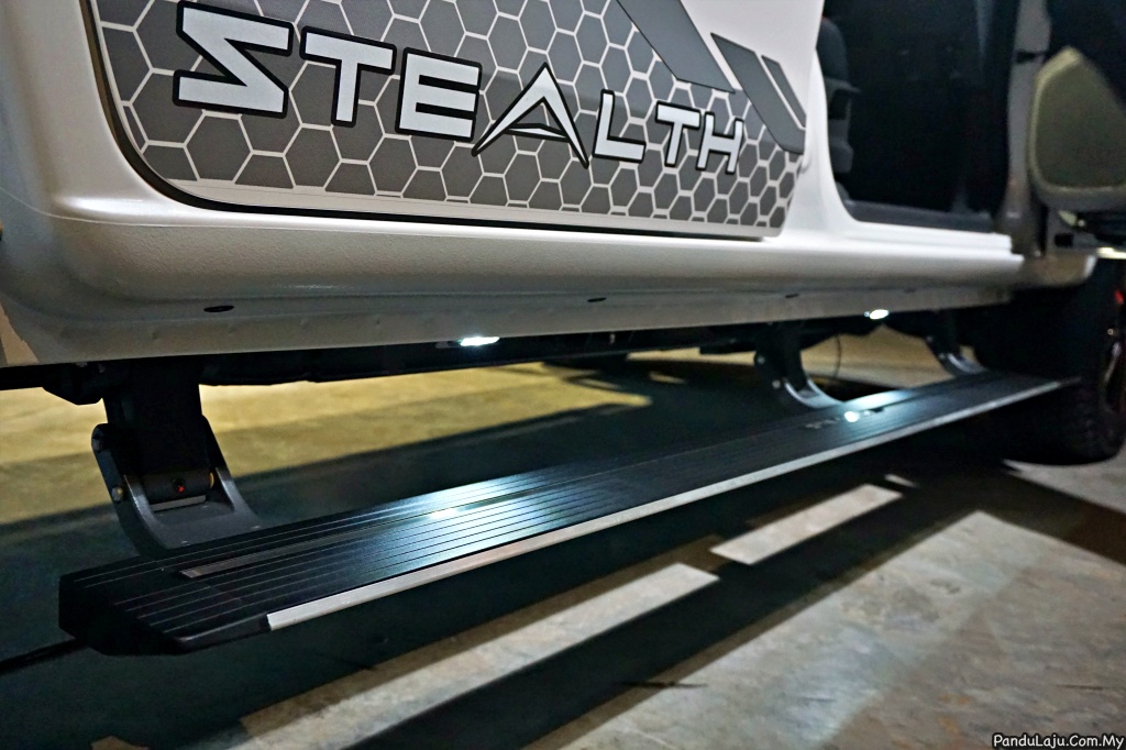6. Perbezaan lain pada Isuzu D-Max Stealth ialah pemijak sisinya boleh alih dan disimpan dengan rapi. Ini ciri pertama seumpamanya ditawarkan secara standard pada trak pikap. Ketika pintu ditutup, pemijak sisi berkenaan akan tersimpan dengan kemas di bawah badan trak menjadikan profil sisinya lebih bersih.