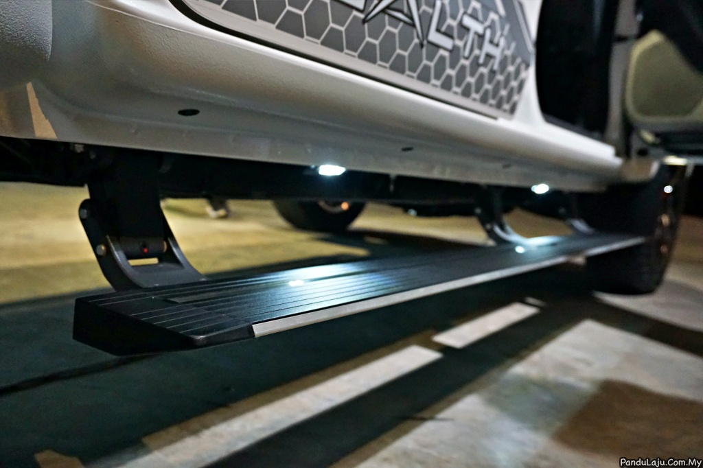 Jika mana-mana pintu dibuka pula, pemijak sisi berkenaan akan terletak pada tempat sepatutnya untuk memudahkan pergerakan penumpang keluar dan masuk. Tidak ketinggalan turut tersedia cahaya automatik di bahagian bawah kenderaan yang membantu pada waktu malam.