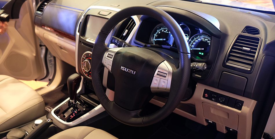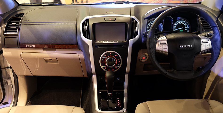 Ruang kabin menampilkan rekaan elegan dengan menaiktaraf permukaan lembut bersama padanan panel corak kayu pada pintu dan papan pemuka. Isuzu MU-X facelift turut menawarkan panel meter rekaan baharu e-LUMAX (electroluminescent) dengan paparan multi info (MID).