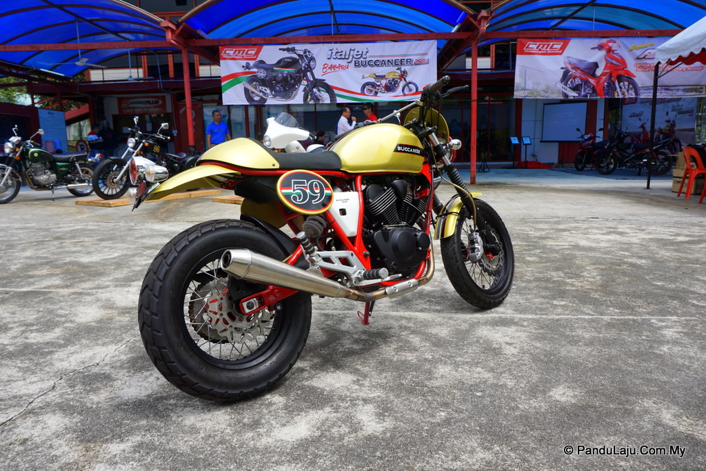 Urusan brek pula diserahkan kepada cakera 280m pada bahagian depan dan 240mm untuk belakang. Bagi anda yang mahu dapatkan Italjet Buccaneer 250i, model café racer ini boleh mula didapati bermula Oktober 2017. Maklumat lanjut, layari www.cmcmotorcycles.com.my.