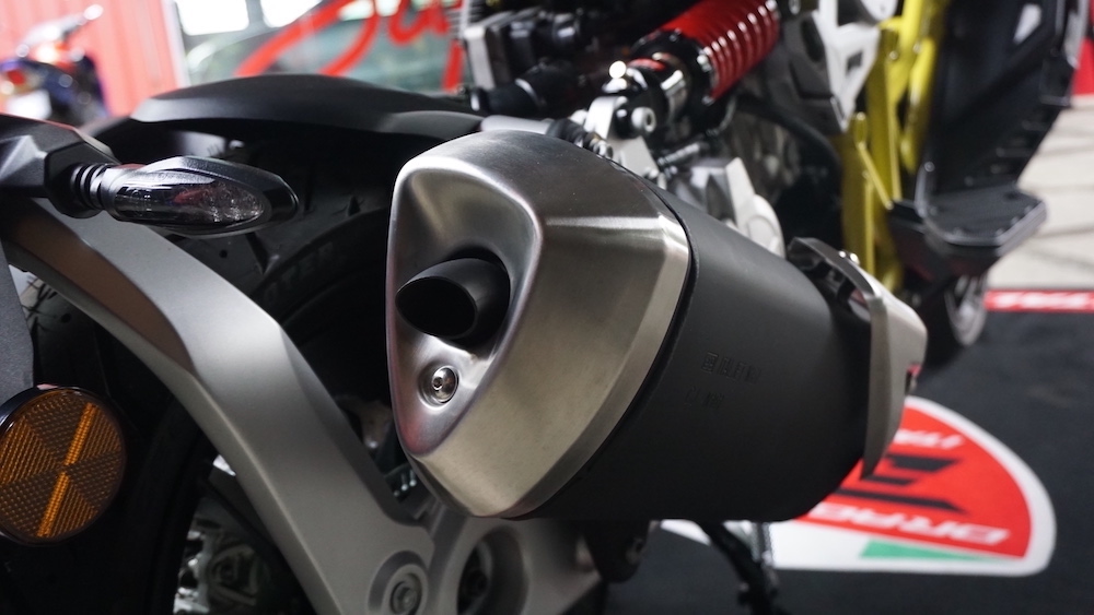 Skuter itu bukan model import dari Itali, tetapi dipasangkan di Malaysia dan ditawarkan dalam tiga warna pilihan, iaitu Anthracite White Red (merah), Anthracite Yellow (kuning) dan Black Grey (hitam). Hanya varian kuning menggunakan casis kuning, manakala dua lagi kekal merah.