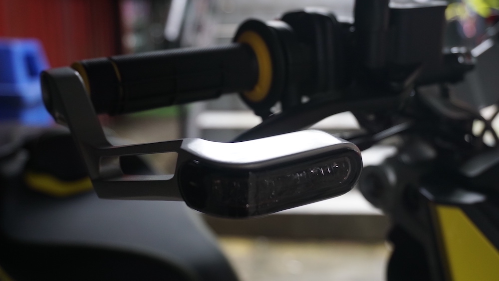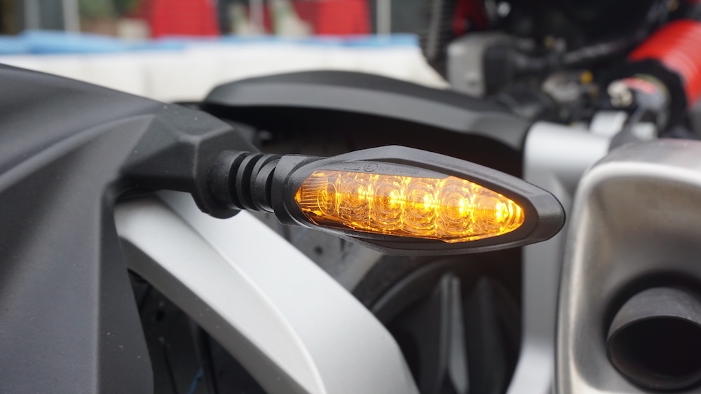 - Lampu signal belok depan disepadukan pada gad tuil aloi. Apabila diaktifkan, paparan jenis sekuensial.