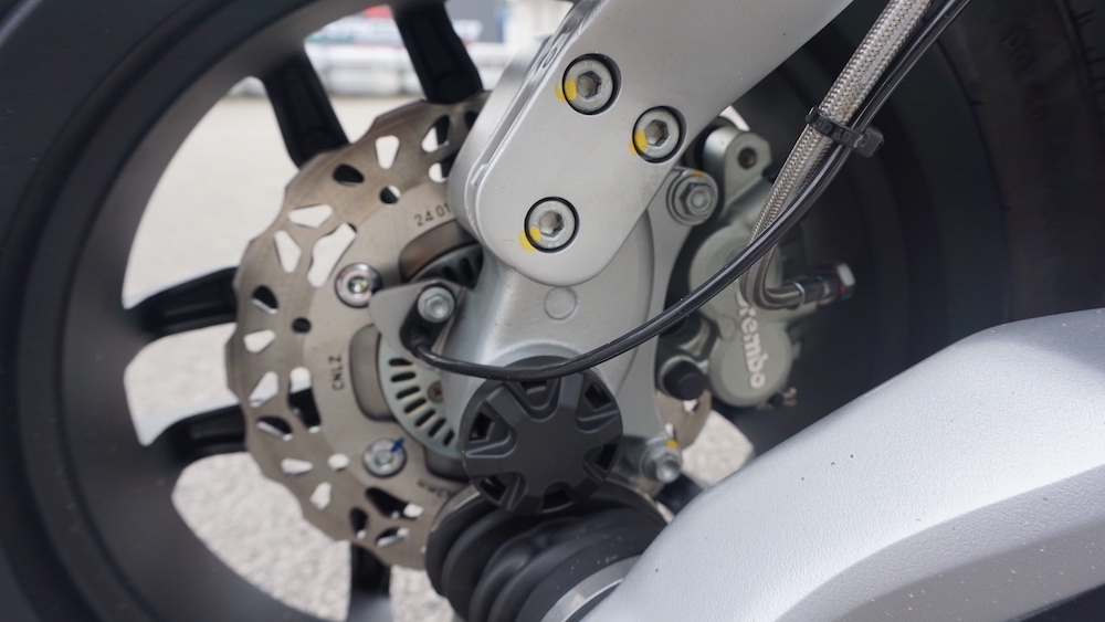 - Sistem brek cakera 200mm (depan), dan 190mm (belakang) dengan kaliper Brembo, berserta Sistem Brek Anti-Kunci (ABS).