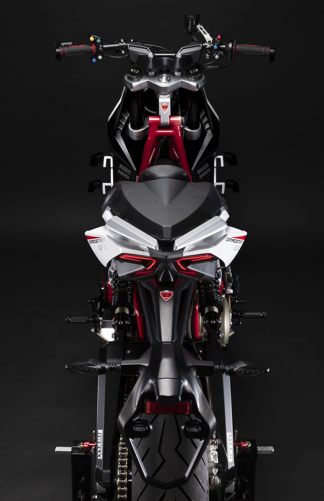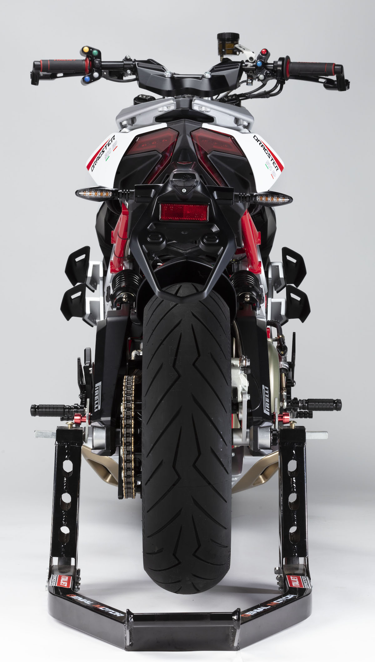 - Brek cakera kembar 270mm (depan), cakera tunggal 230mm (belakang) dengan kaliper Brembo dan SistemBrek Anti-Kunci (ABS).
