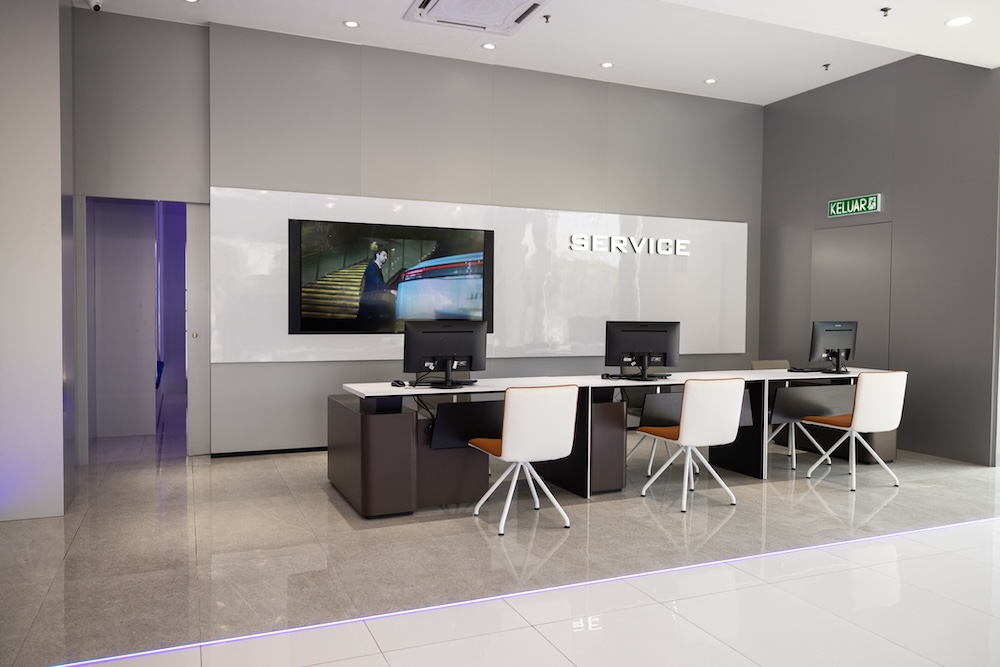 Antara ciri menarik di Pusat 3S ini adalah penggunaan paparan LED interaktif yang membolehkan pelanggan mengimbas spesifikasi setiap model kenderaan secara santai.