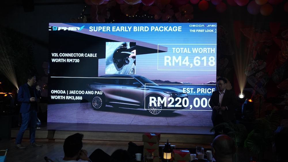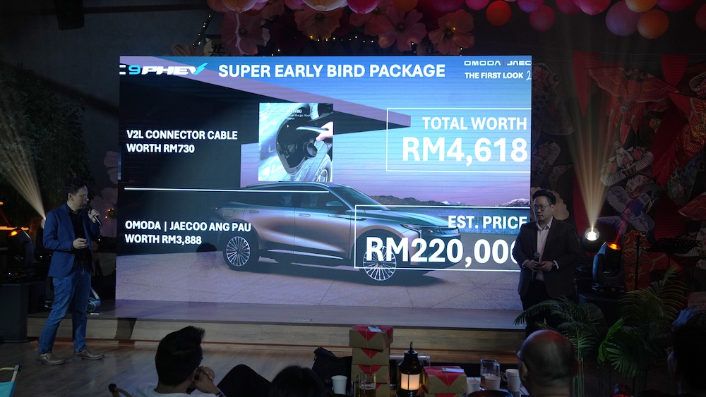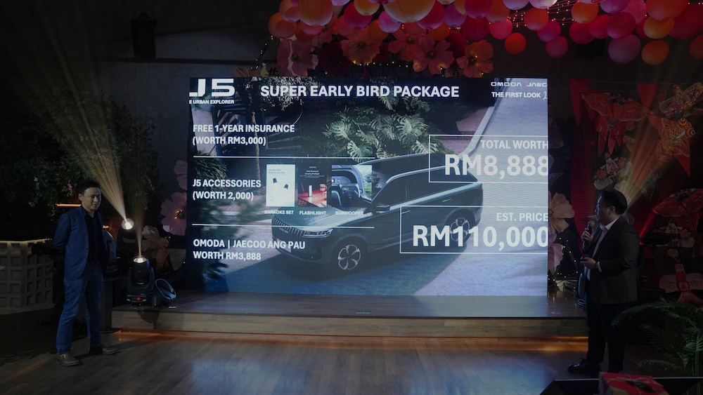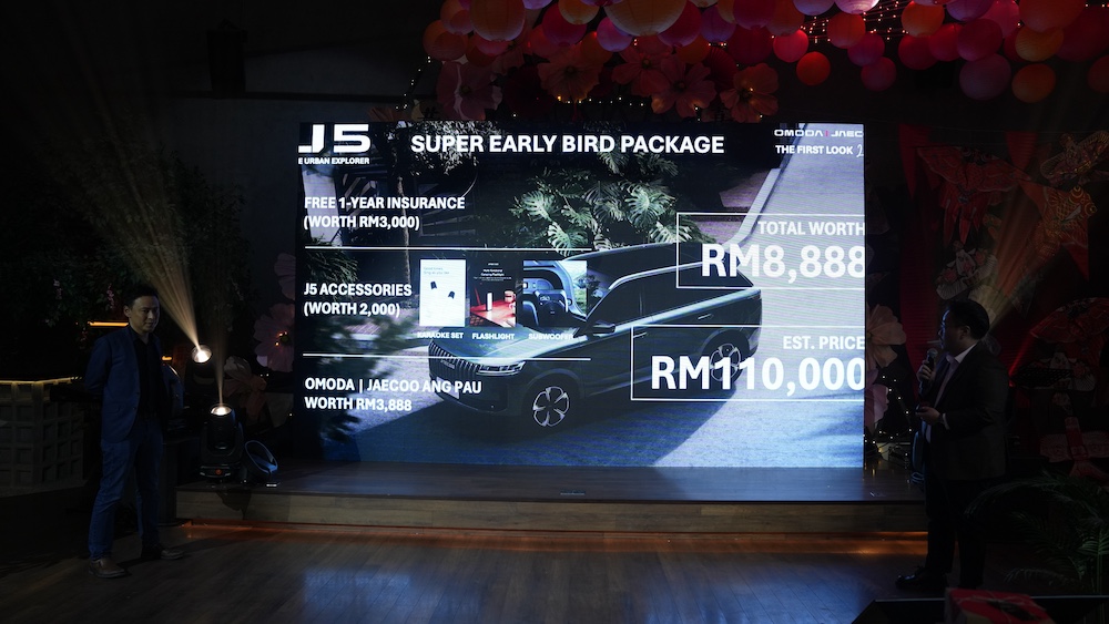 Menjelang pelancaran tersebut, jenama itu mendedahkan anggaran harga RM110,000 untuk JAECOO J5, selain memperkenalkan pakej ganjaran ‘Super Early Bird’ bernilai RM8,888 buat pelanggan yang membuat tempahan awal sebelum pelancaran rasmi bulan depan.