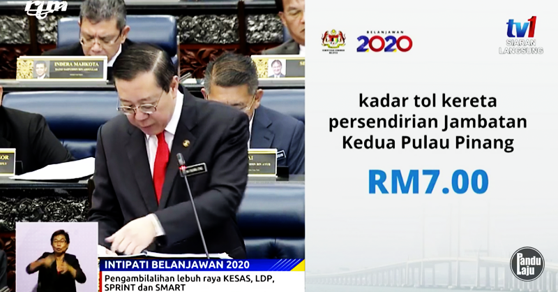 BACA >>> #Bajet2020: Kadar Tol Kereta di Jambatan Kedua Pulau Pinang Turun kepada RM7