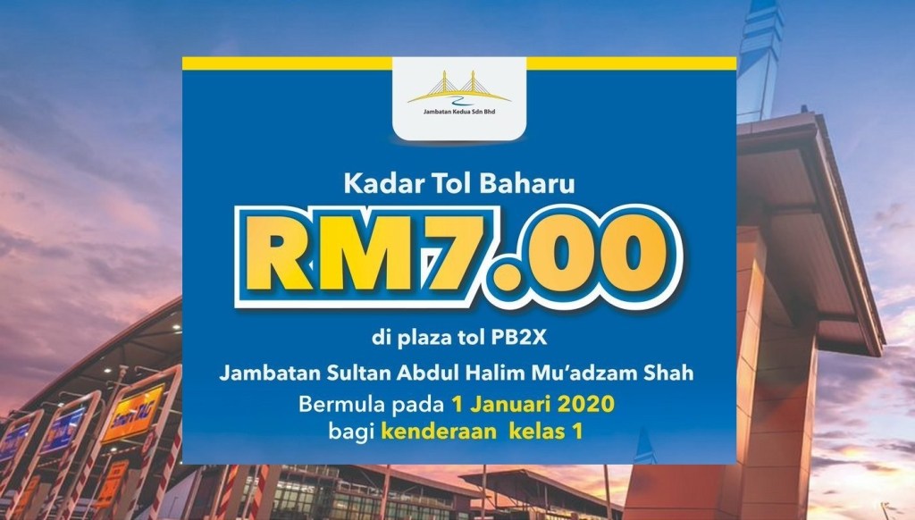 PENGGUNA Jambatan Sultan Abdul Halim Mu’adzam Shah (JSAHMS) atau Jambatan Kedua Pulau Pinang kini cuma perlu membayar tol RM7 berbanding RM8.50 sebelum ini, bermula 1 Januari 2020.