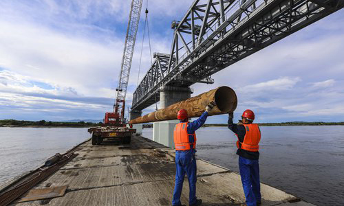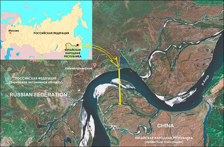 Pembinaan jambatan sepanjang 7.19km (km) itu bermula pada 2014 dengan menghubungkan bandar Tongjiang, timur laut China dan Nizhneleninskoye di timur Rusia.