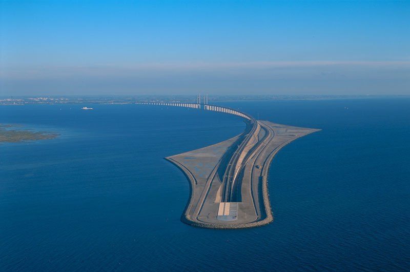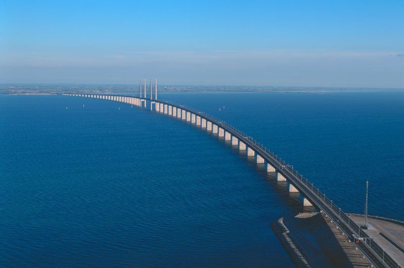Jambatan Øresund menggabungkan laluan jalan raya dan rel kereta api menyeberangi Selat Øresund antara Denmark dan Sweden. Panjang jambatan berkenaan ialah 8km dari pesisir pantai Sweden hingga pulau buatan Peberholm di pertengahan selat. Kemudian, jambatan itu bersambung pula dengan terowong bawah air – Terowong Drogden – sepanjang 4km dari Peberholm ke Pulau Amager di Denmark.