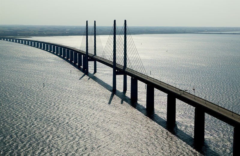 Jambatan Øresund menggabungkan laluan jalan raya dan rel kereta api menyeberangi Selat Øresund antara Denmark dan Sweden. Panjang jambatan berkenaan ialah 8km dari pesisir pantai Sweden hingga pulau buatan Peberholm di pertengahan selat. Kemudian, jambatan itu bersambung pula dengan terowong bawah air - Terowong Drogden - sepanjang 4km dari Peberholm ke Pulau Amager di Denmark.