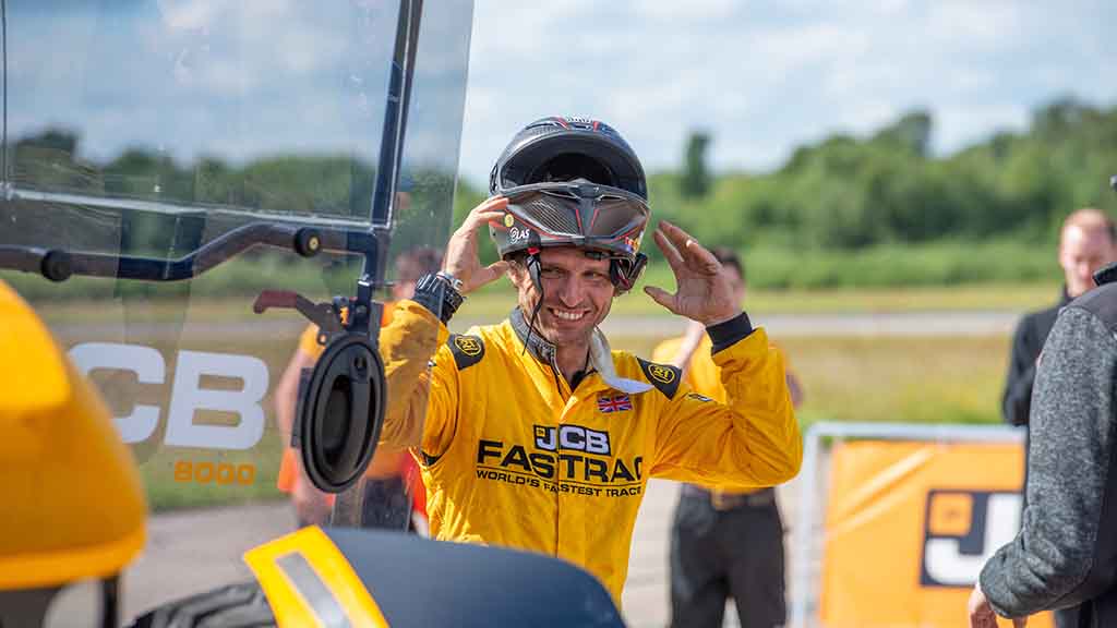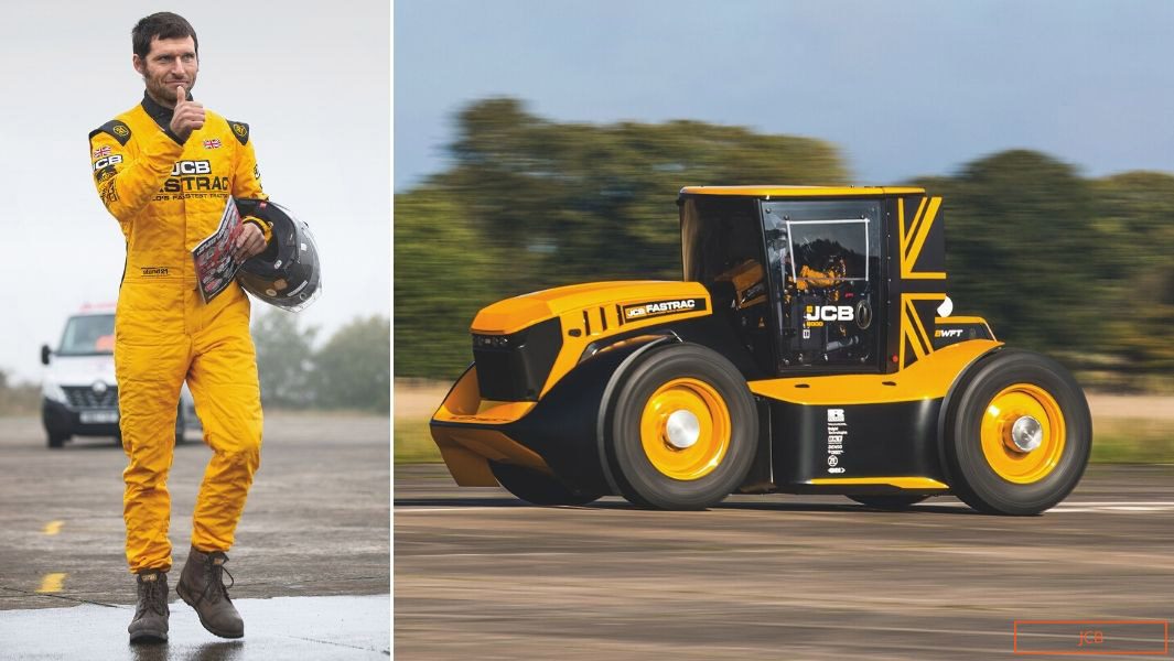 Traktor JCB Fastrac itu kemudian dipandu uji Guy Martin yang juga pelumba motosikal, mekanik lori dan penyampai TV. Bertempat di pangkalan udara Elvington, beliau akhirnya mencatatkan rekod traktor terpantas dunia dengan kelajuan maksimum 247kmj, manakala kelajuan purata ialah 217kmj. Dahsyat!