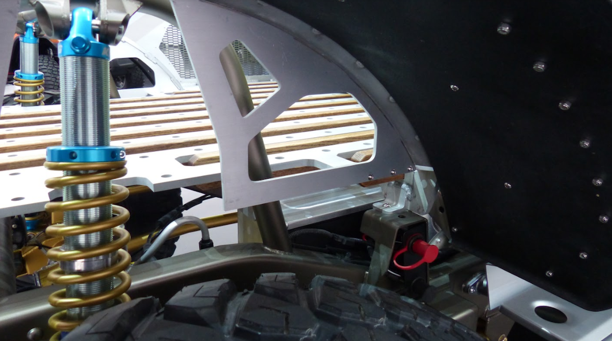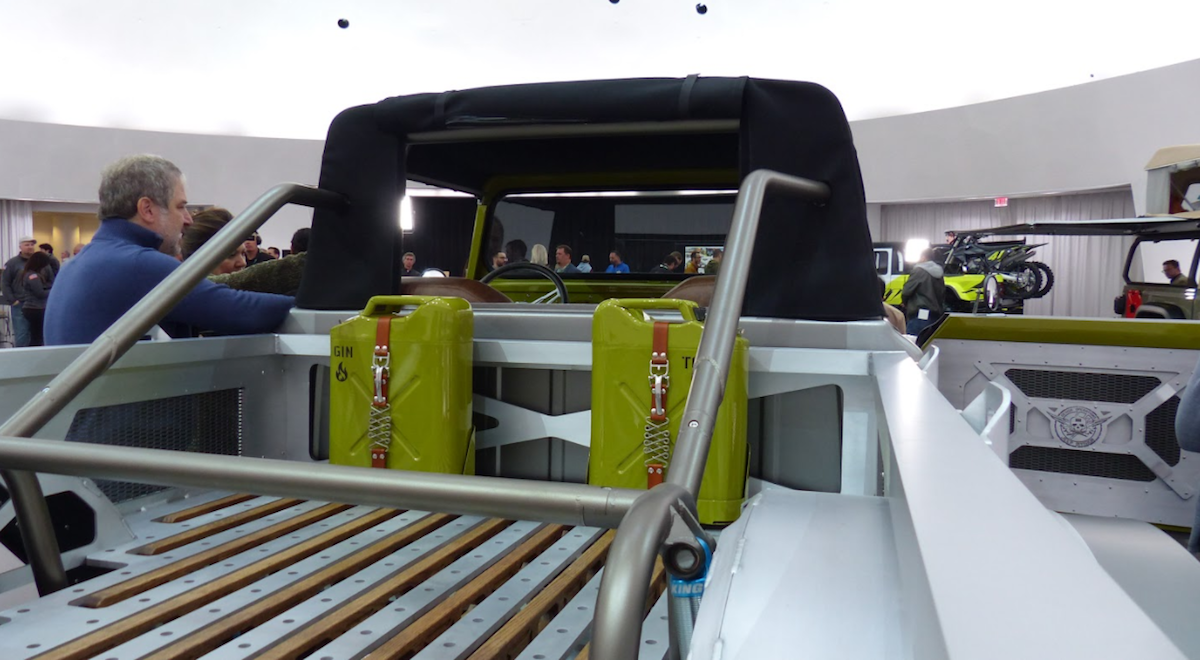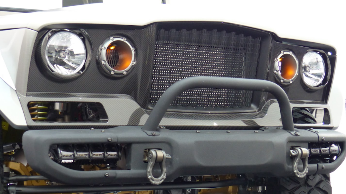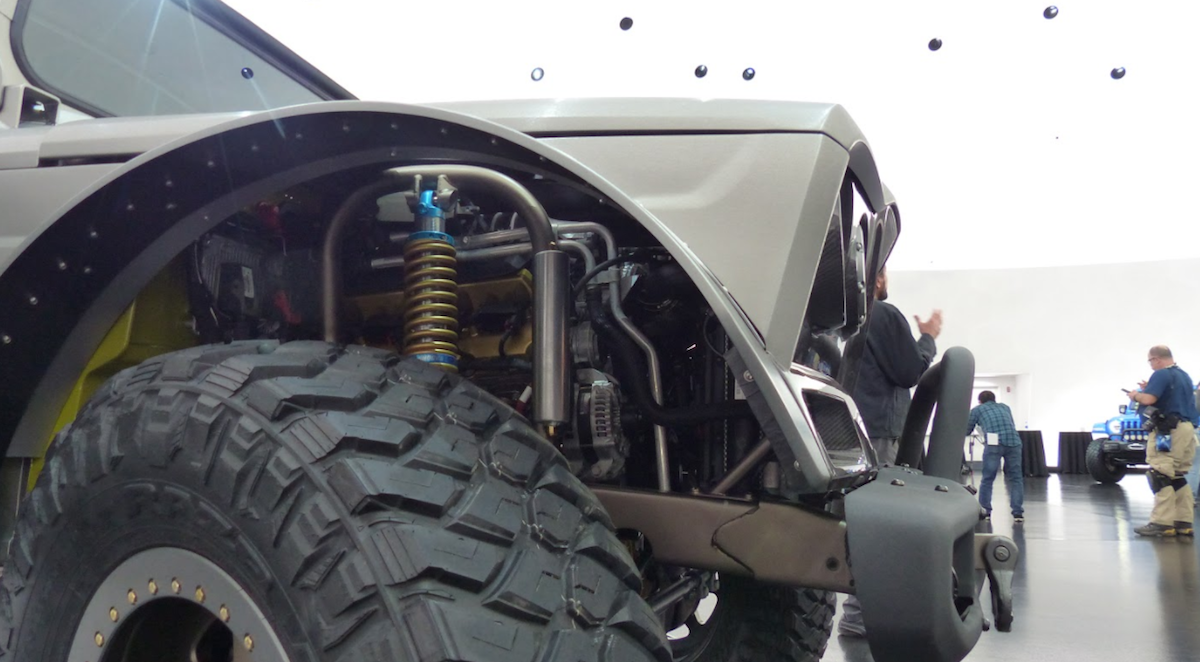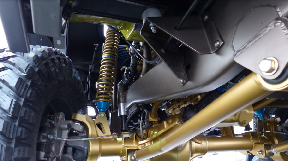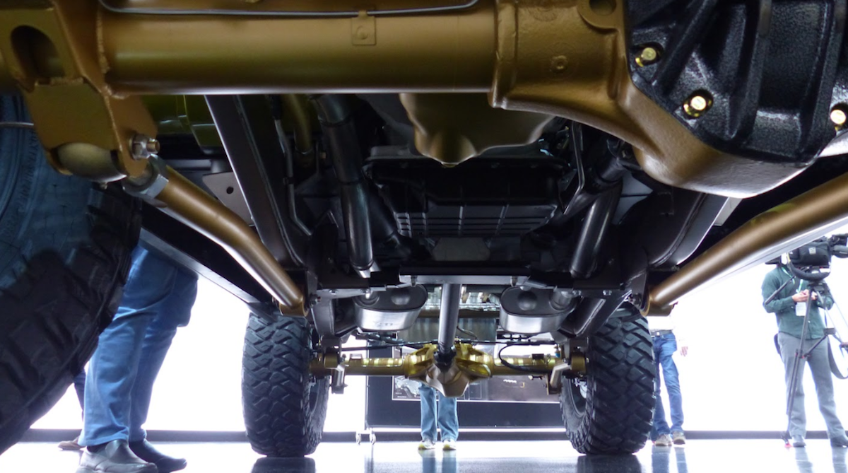 Bampar besi yang berasal daripada Jeep Gladiator Rubicon dipasangkan supaya selari dengan konsep brushed metal badan model ini. Keupayaan off-road dipertingkat dengan frem asal diperkuat, manakala sistem suspensi asal daripada spring dedaun (leaf spring) digantikan dengan koil dan pautan (link).