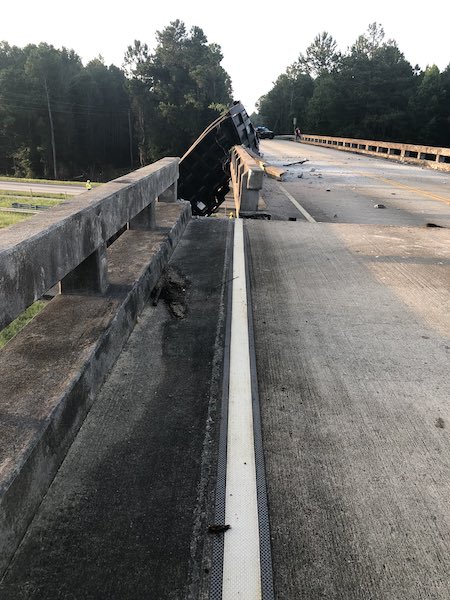 INSIDEN trak membawa muatan lebih had tinggi dan merempuh jejambat bukan satu kejadian luar biasa. Namun, situasi agak berbeza di Georgia.