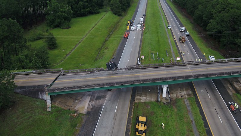 I-16 bridge demo crew mobilizing to work around the clock to return traffic to interstate lanes ASAP. Stay tuned to thread. Will update when we have good info. pic.twitter.com/ECXz4ad2Ys