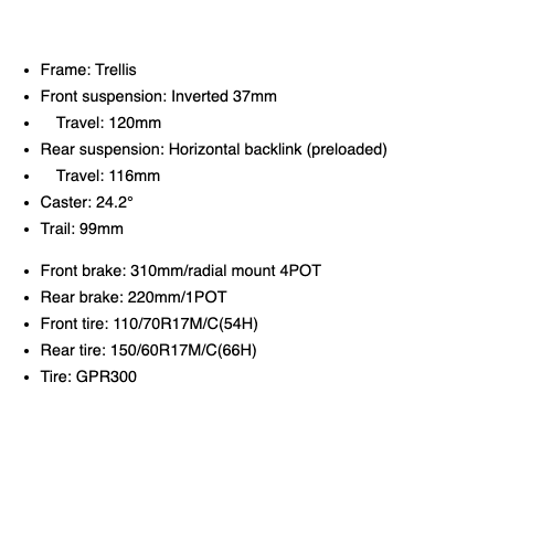 Jadi Ninja ZX-25R di Jepun memerlukan komponen emisi tambahan bagi mengurangkan pencemaran dan kemungkinan ditambah penukar bermangkin (catalytic converter) pada mufler ekzos. Ini dikukuhkan lagi dengan beza berat,  model Jepun memiliki berat 183kg (Standard) dan 184kg (SE), manakala model Indonesia 180kg (Standard) dan 182 (ABS SE).