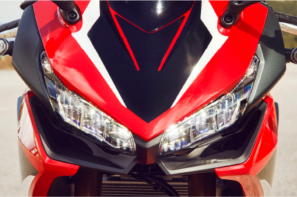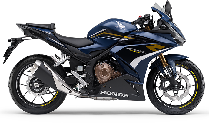 - CBR400R menampilkan tiga pilihan warna: Grand Prix Red (merah), Matte Jeans Blue Metallic (biru) dan Matt Ballistic Black Metallic (hitam)