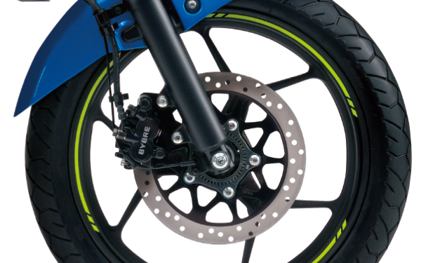 - Sistem brek menggunakan cakera tunggal 266mm dengan kaliper Bybre daripada Brembo yang dipadankan Sistem Brek Anti-Kunci (ABS) untuk roda depan, manakala brek belakang pun jenis cakera tunggal.