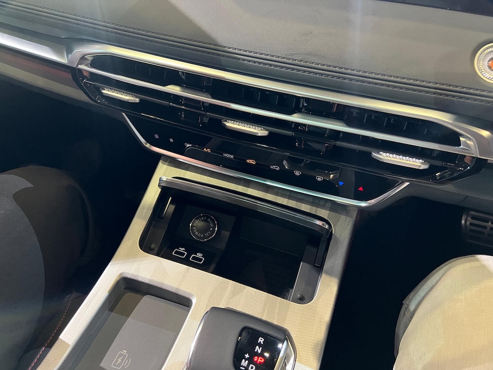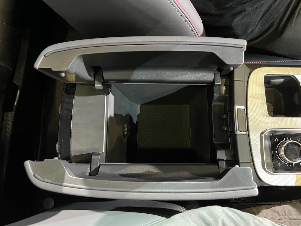 - Ada pengecas wayarles 50W, tiga port USB Type-A, satu port USB Type-C, dan soket 12V.