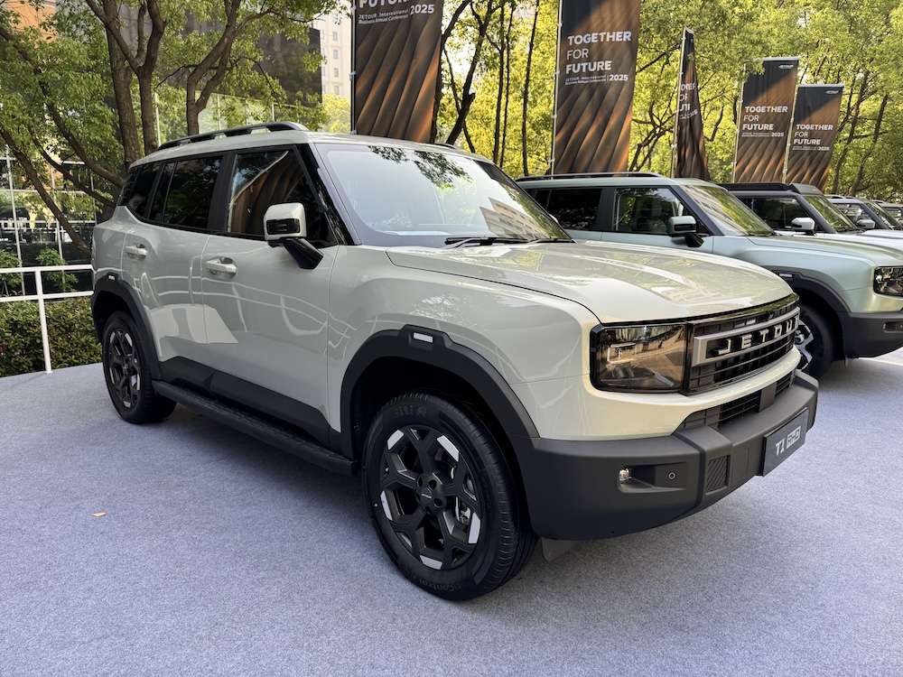 JETOUR ada mempamerkan dua varian pemanduan kanan (RHD) kenderaan utiliti sukan (SUV) off-road T1 dan T2 di pameran Auto Shanghai 2025, China, baru-baru ini.