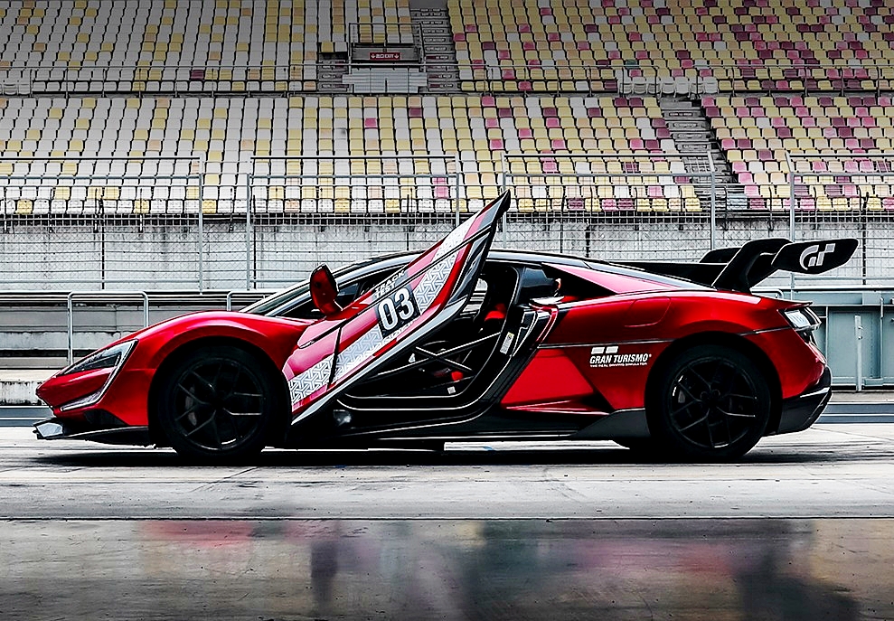 YANGWANG U9: Kereta super daripada jenama mewah BYD, YANGWANG, dipamerkan di atas pentas prestasi untuk menonjolkan teknologi dan inovasi automotif terkini syarikat.
