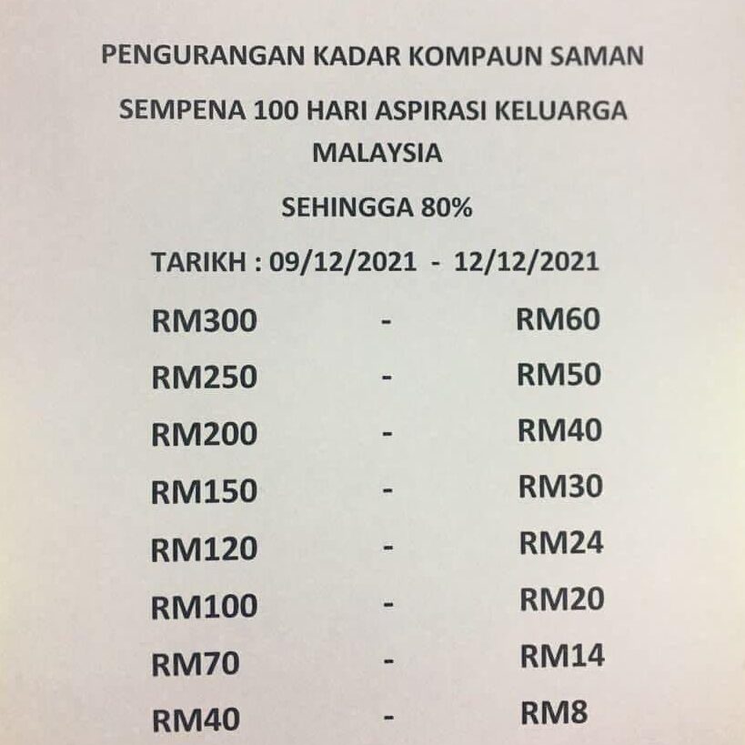 Semalam, Menteri Kesihatan, Khairy Jamaluddin berkata, Kerajaan mengarahkan penutupan segera kaunter diskaun saman di Pusat Konvensyen Kuala Lumpur (KLCC) yang dibuka sempena program Aspirasi Keluarga Malaysia ke-100.