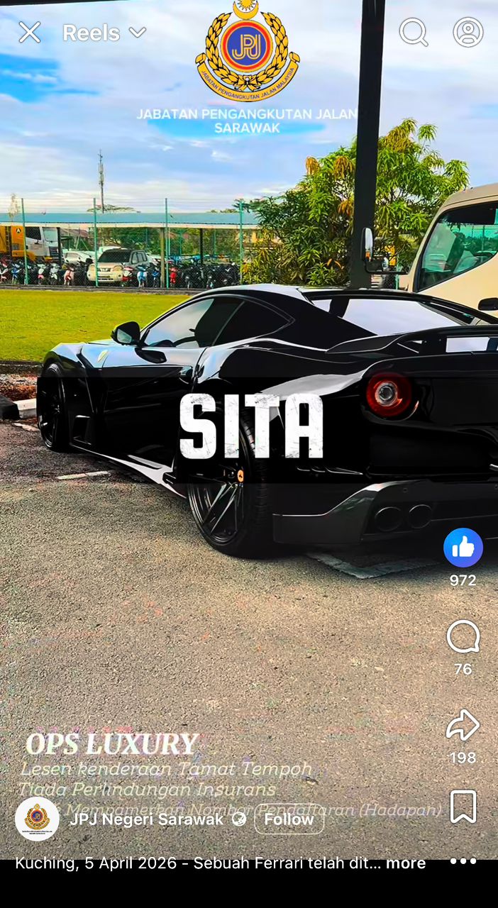 JABATAN Pengangkutan Jalan (JPJ) Negeri Sarawak menyita sebuah Ferrari ultra-terhad dalam operasi Op Luxury yang dijalankan baru-baru ini.