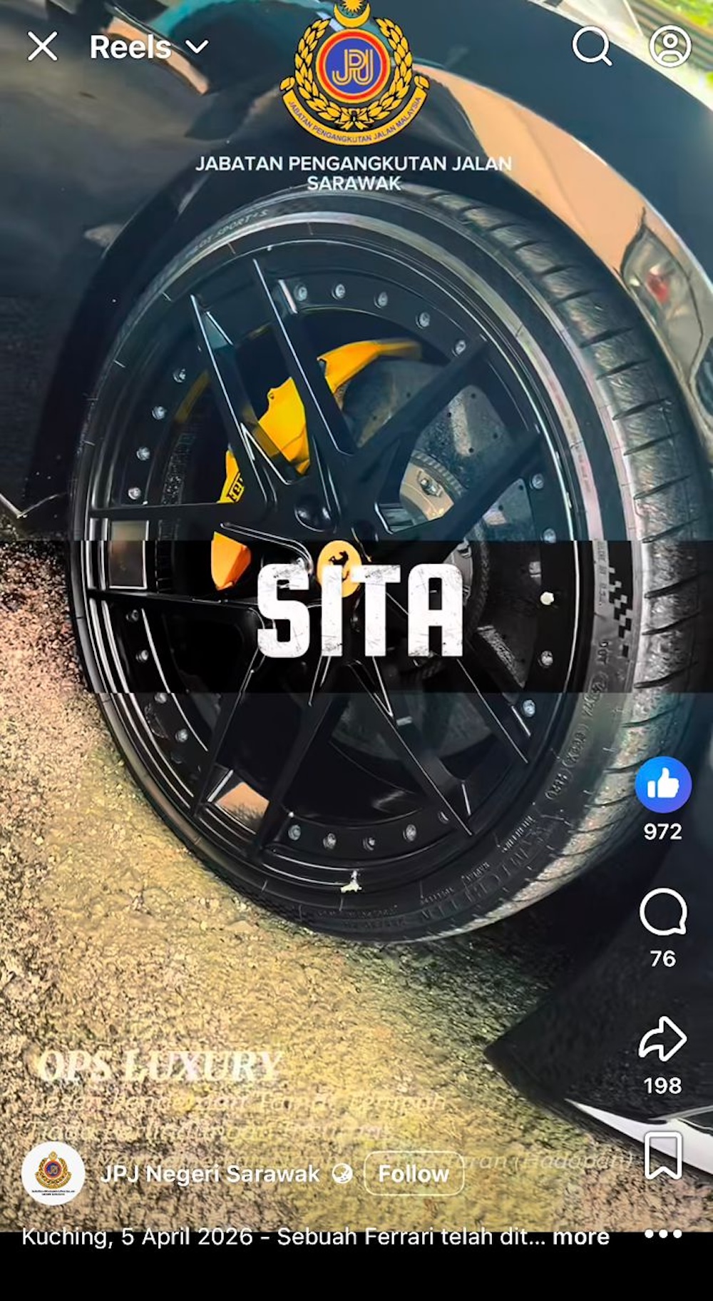 JABATAN Pengangkutan Jalan (JPJ) Negeri Sarawak menyita sebuah Ferrari ultra-terhad dalam operasi Op Luxury yang dijalankan baru-baru ini.