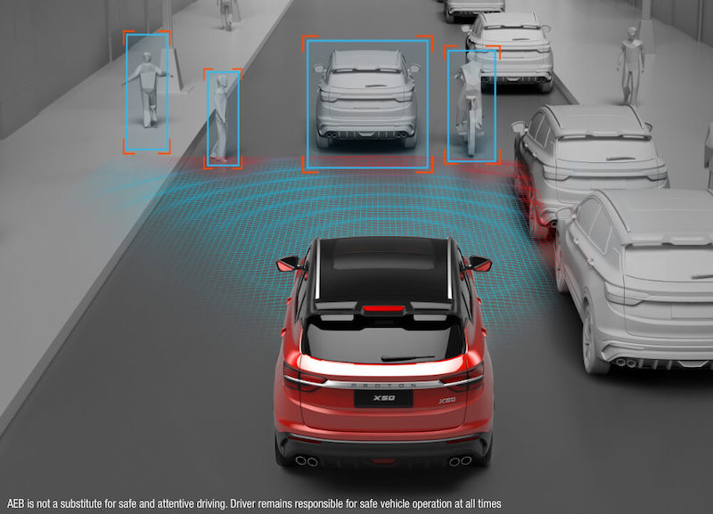 - Brek Kecemasan Autonomi (AEB) dengan pengesan pejalan kaki.