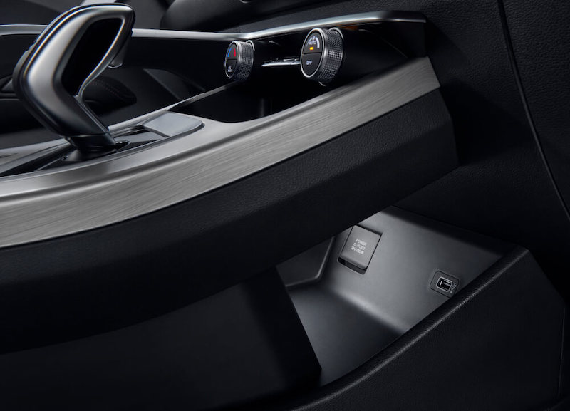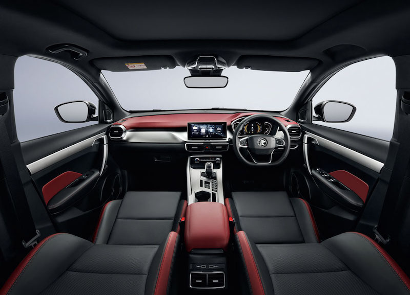 - Permukaan papan pemuka jenis sentuhan lembut (soft-touch) merah. Bahagian lain papan pemuka dan konsol tengah hadir dalam kemasan satin metalik.