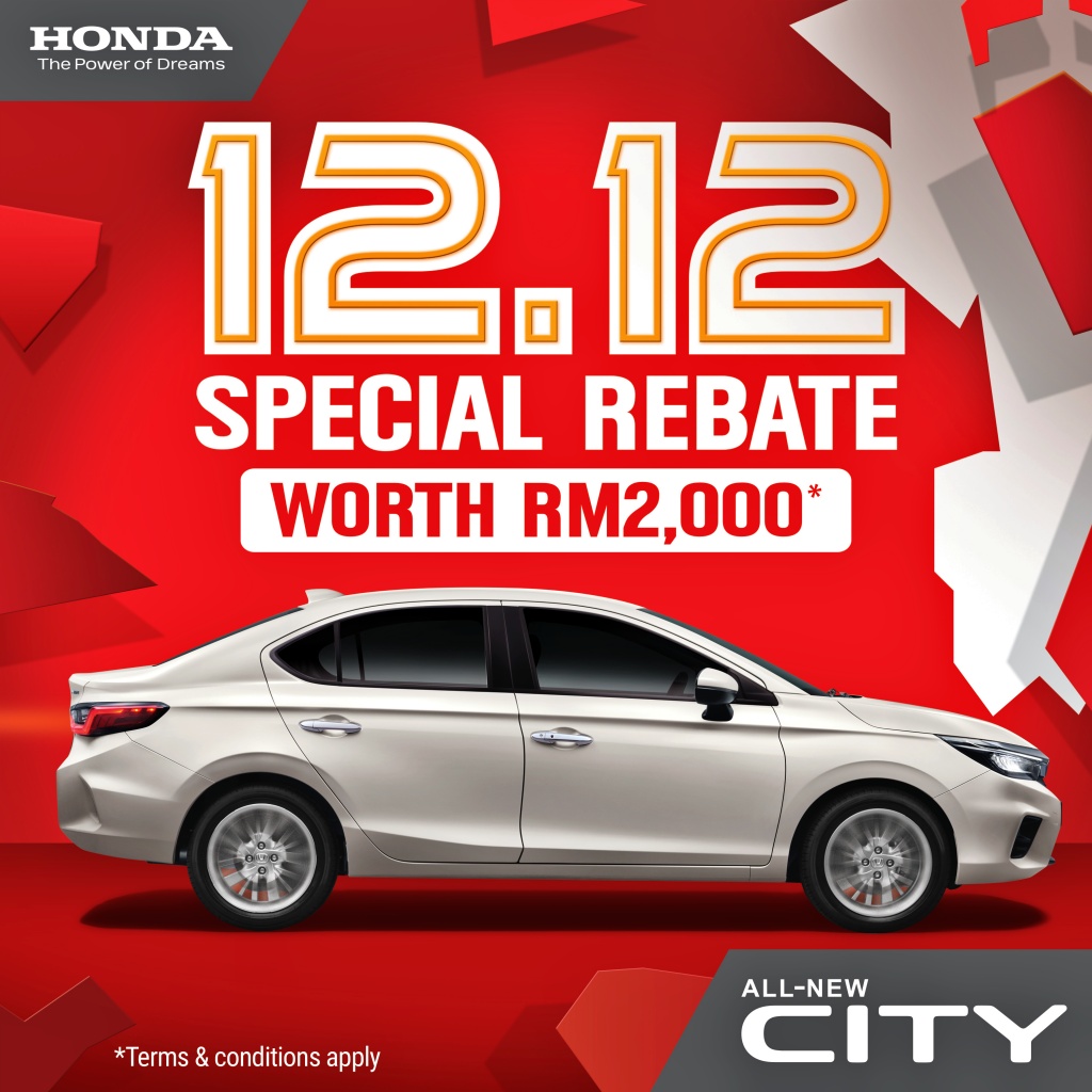 HONDA Malaysia mengumumkan melanjutkan jualan istimewa 12.12 dengan rebat RM2,000 untuk Honda City varian S dan E hingga 31 Disember ini.