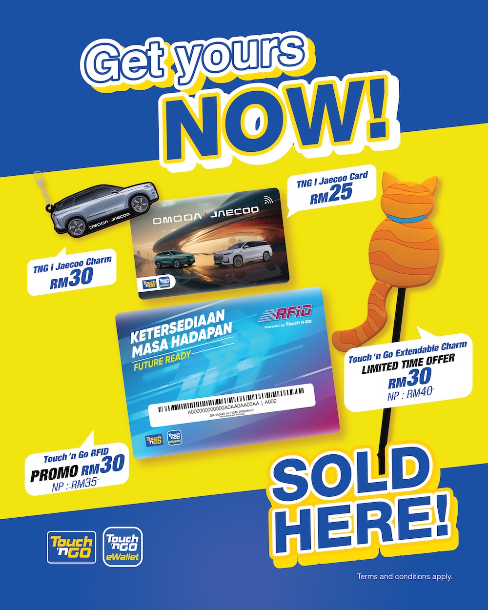 Turut dipamerkan ialah rangkaian produk Touch ‘n Go lain termasuk pelekat RFID, kad TNG Jaecoo edisi terhad dan juga Extendable Charm – Cat Edition.