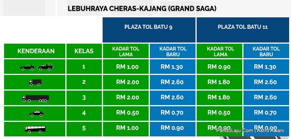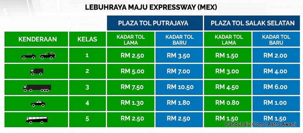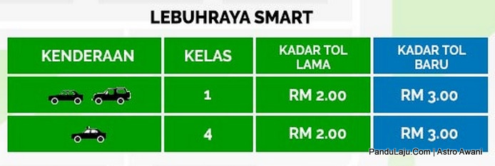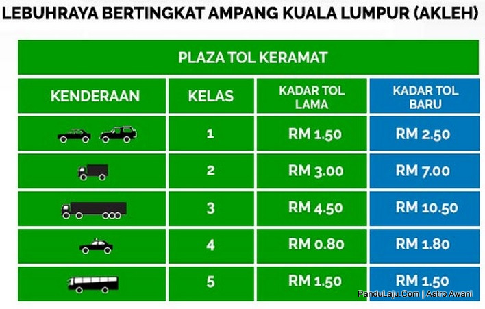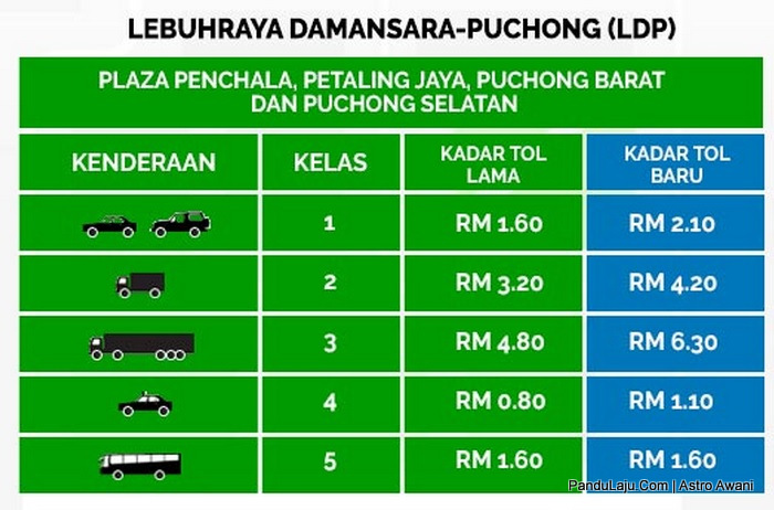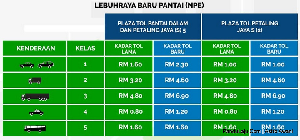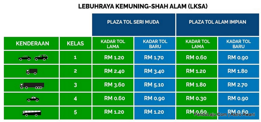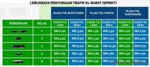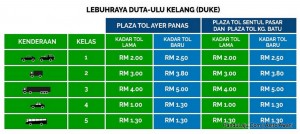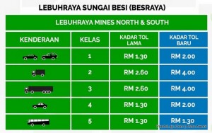 Berikut adalah senarai perbandingan harga baharu dan lama bagi lebuh raya terlibat untuk panduan anda: