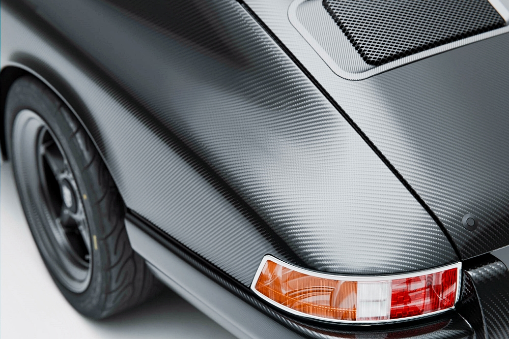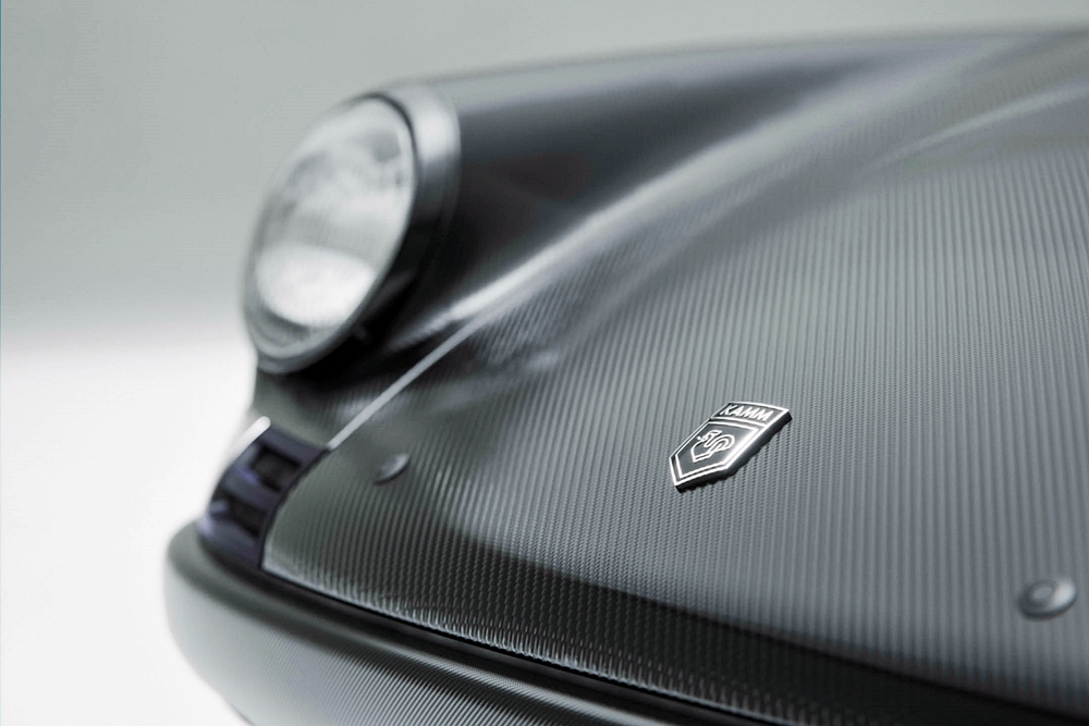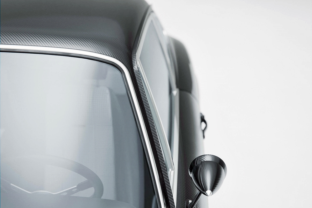 Kereta restomod itu kekal dengan bumbung dan panel sukuan belakang besi asal dan digabung bersama panel gentian karbon dan penggunaannya yang meluas pada keseluruhan kereta.