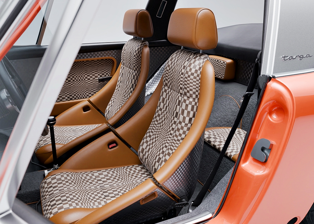 Warna dipilih iaitu Tangerine begitu menyerlah dan bahagian kabin juga menarik dalam skema warna tembakau dan corak Porsche Pasha.