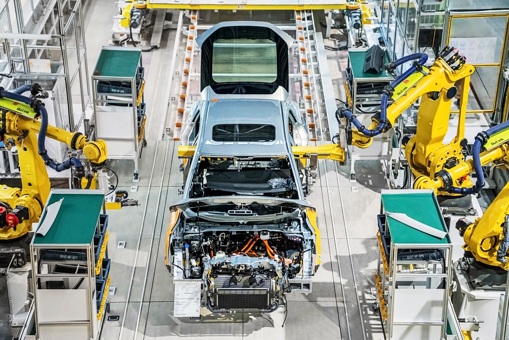 Kilang pengeluaran NEV dilengkapi peralatan terkini untuk sistem pengeluaran bercekapan tinggi, pintar dan rendah karbon. Proses tera (stamping) dan kimpalan tidak memerlukan pekerja logistik, sebaliknya kaedah automasi.