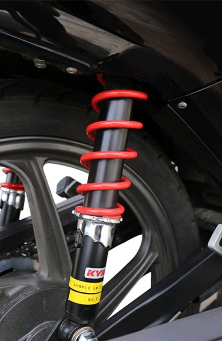 Bahagian roda menggunakan rim aloi 17 inci dengan tayar tiubles 70/90 (depan) dan 80/90 (belakang), manakala brek depan dan belakang menggunakan brek jenis dram dengan kapasiti tangki minyak 4 liter.